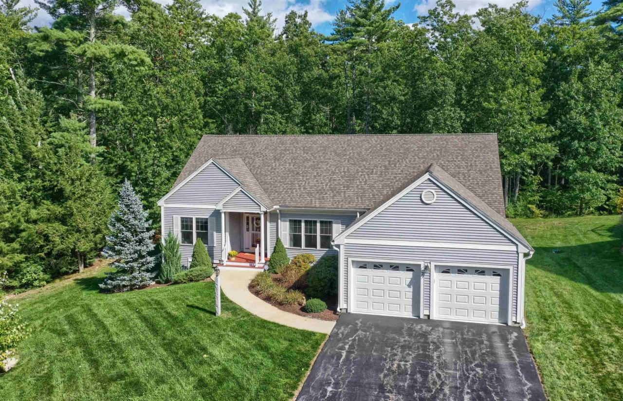 This pristine 9 yrs young ranch-style detached condo is BETTER THAN NEW! Meticulously maintained and thoughtfully upgraded by its original owners, this lovely sun-filled home is ONE-OF-A-KIND! Nestled into the woods and backed up to town conservation, you are conveniently located near services and neighbors but surrounded in privacy, including a lovely view from your front porch! Step into a spacious foyer which opens to a sprawling living room with vaulted ceilings, tall windows and lovely gas fireplace. Nearby, a spacious granite topped kitchen with gas range, loads of storage and bright under cabinet lighting and a large eating area offers a forest view out of the magnificent 4-season sunroom--a favorite room! Nearby is an enormous primary bedroom suite with vaulted ceiling and 2-vanity bathroom with soaking tub AND oversized step-in tile shower. The handy laundry/mudroom welcomes in from the spotless garage and leads to an elegant formal dining space with crown moulding, columns and loads of natural light. The spacious office with french doors and added side windows for extra light sits next to a second full bathroom and another lovely bedroom with dual corner windows and view of the back yard. Loaded with upgrades, this home has a brightly lit, climate controlled basement w/ water proof flooring and integrated dehumidifier, plus xtra insulation throughout, extra wide eaves, silent garage doors with battery backup, whole house humidifier...too much to list. Don't wait!